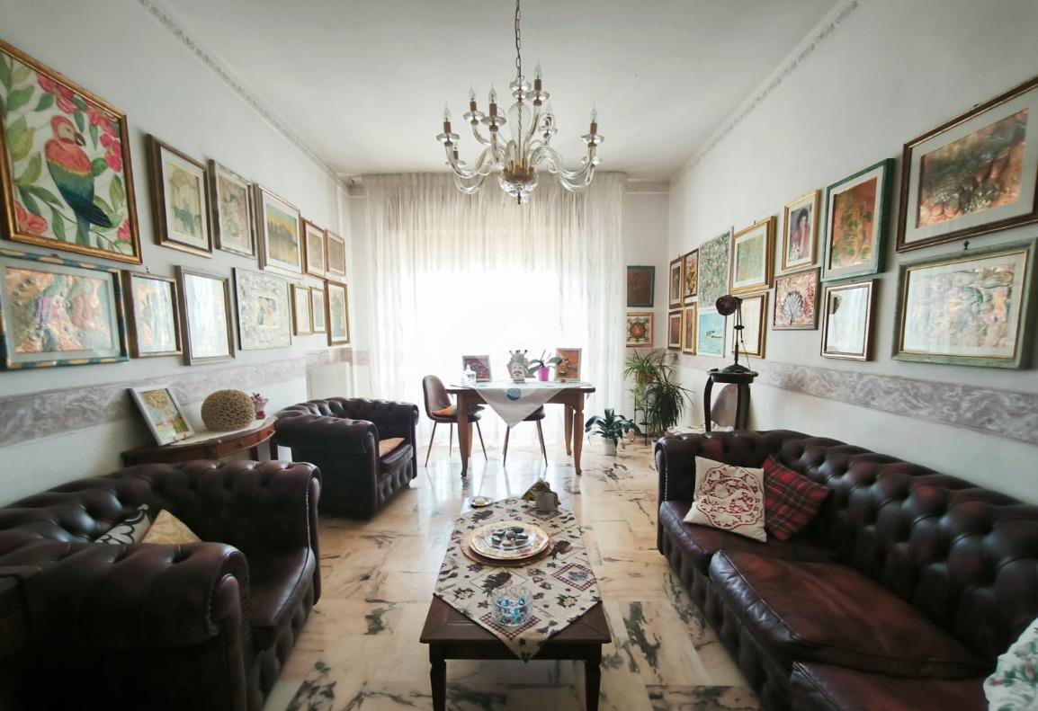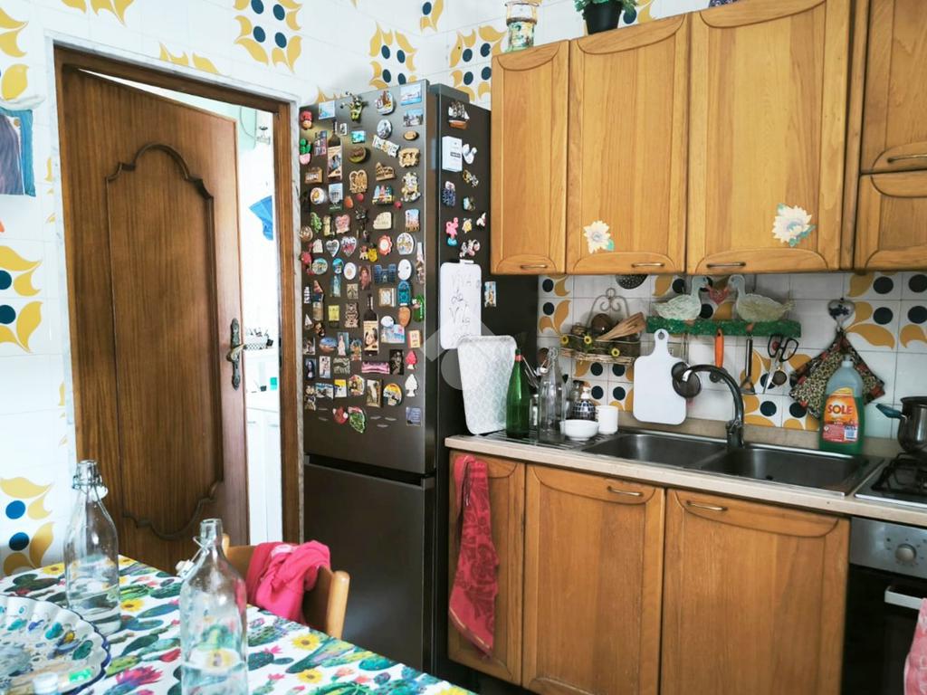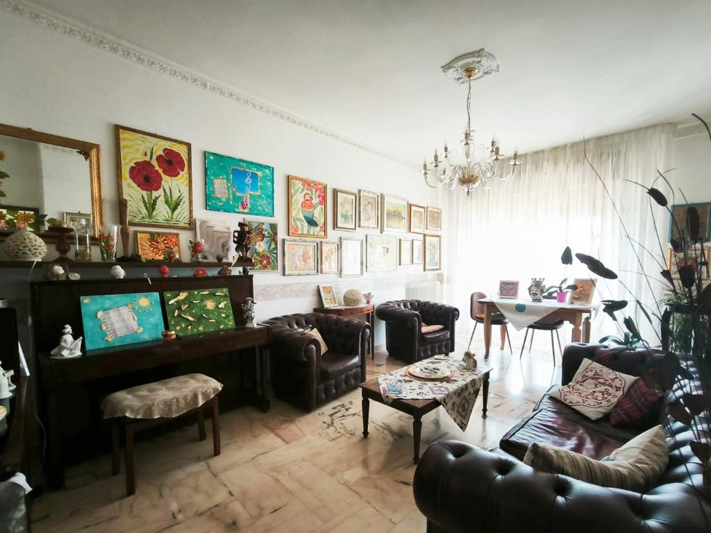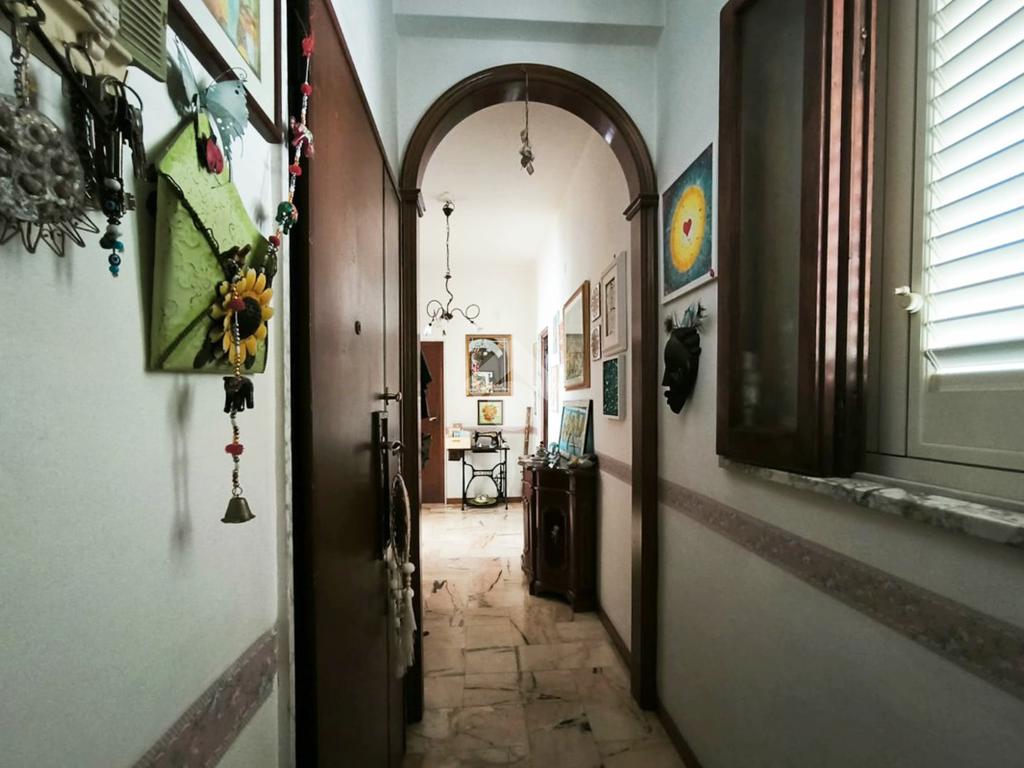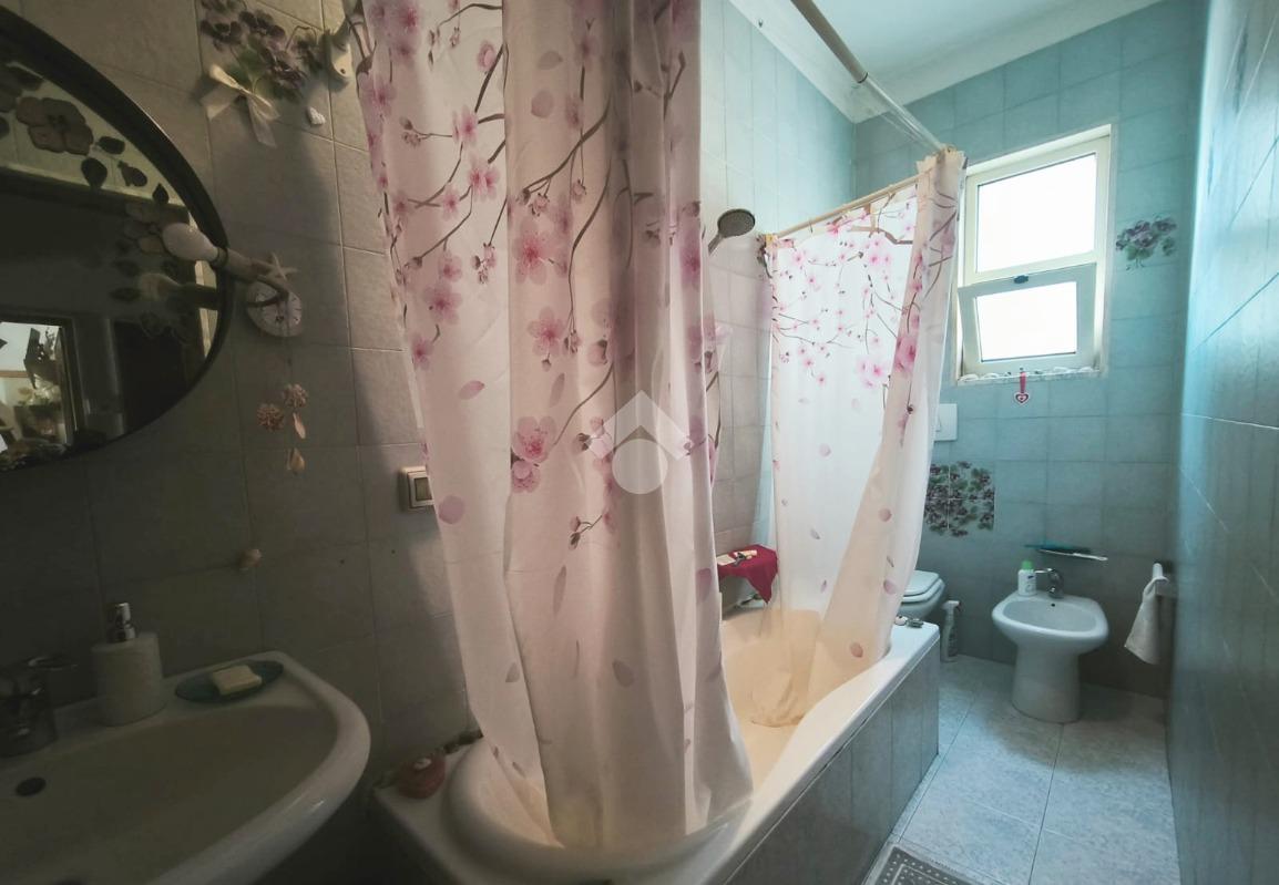 L'appartamento, di ampia metratura, è distribuito in uno spazioso soggiorno con affaccio esterno, tinello con cucina e bagno di servizio, un'ampia camera da letto matrimoniale, camera dei ragazzi, bagno padronale ed una piccola stanzetta finestrata.