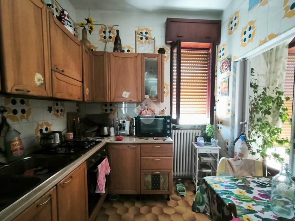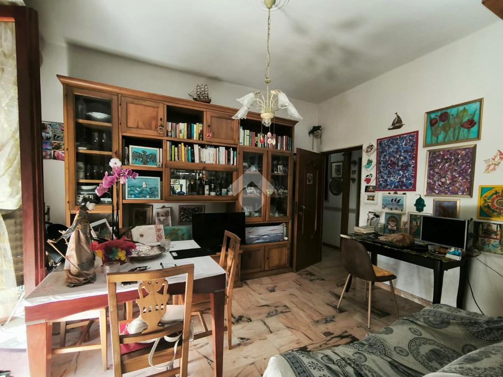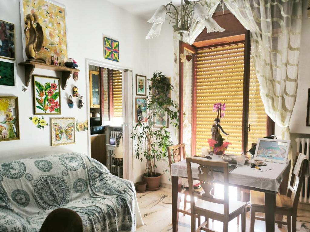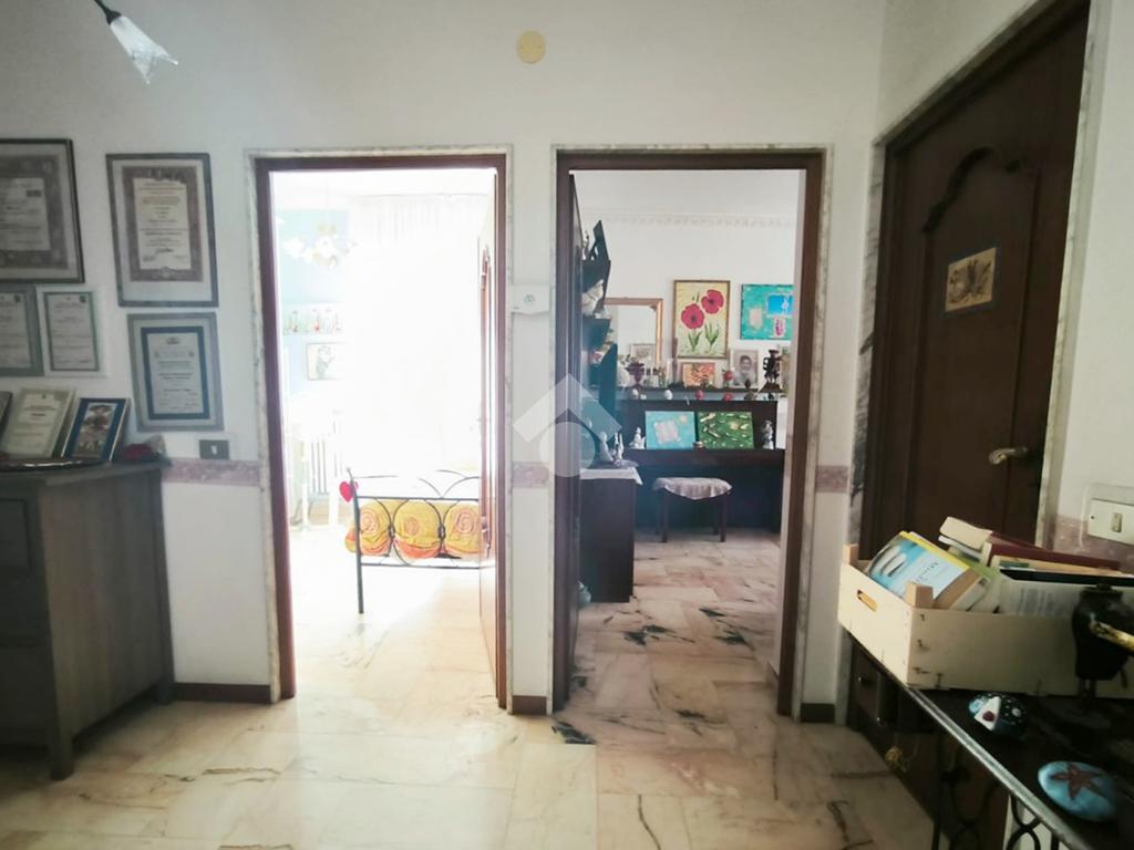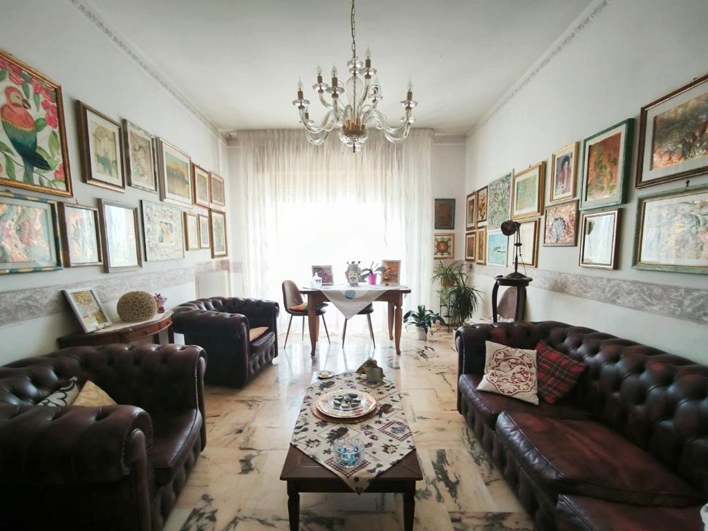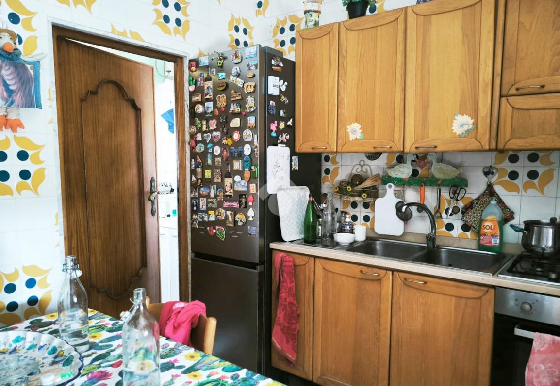 L'appartamento, di ampia metratura, è distribuito in uno spazioso soggiorno con affaccio esterno, tinello con cucina e bagno di servizio, un'ampia camera da letto matrimoniale, camera dei ragazzi, bagno padronale ed una piccola stanzetta finestrata.